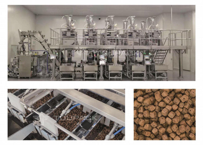 पालतू जानवरों के लिए कई सामग्री वाले खाद्य पदार्थों के लिए चर वजन और पैकेजिंग प्रणाली